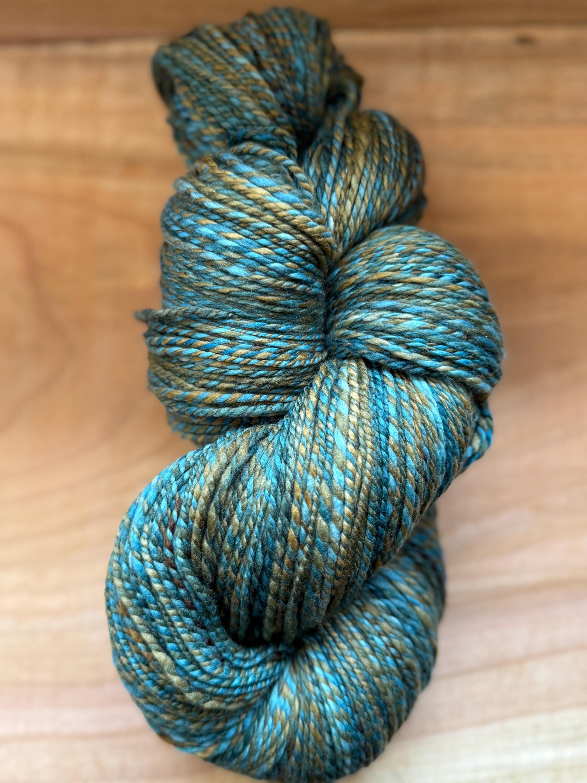 Handspun Yarn – Superfine Merino, 564 Yards, 2-Ply Sport Weight – “Sagefire”